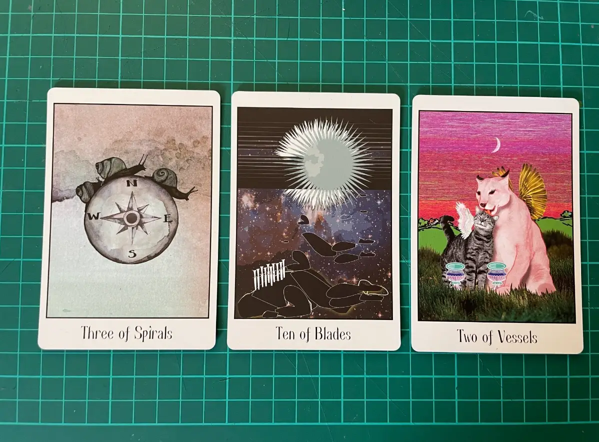 One of our first spreads for the shop, from the Liberation Tarot: what a combo.