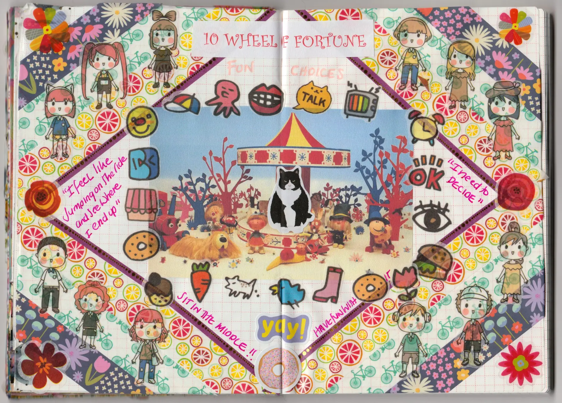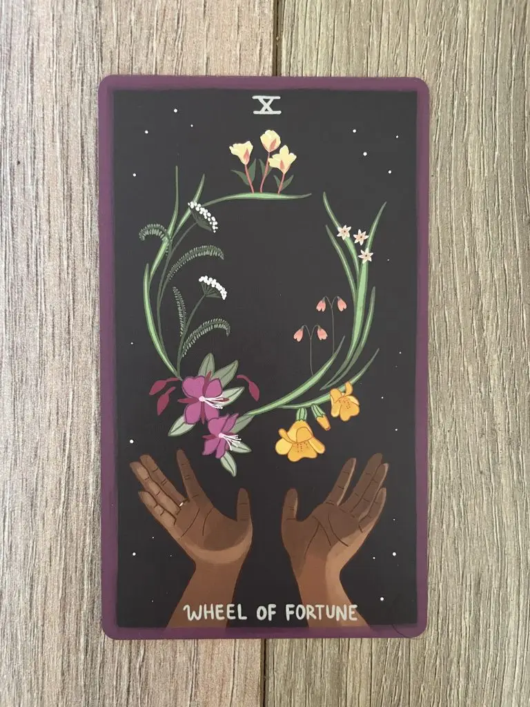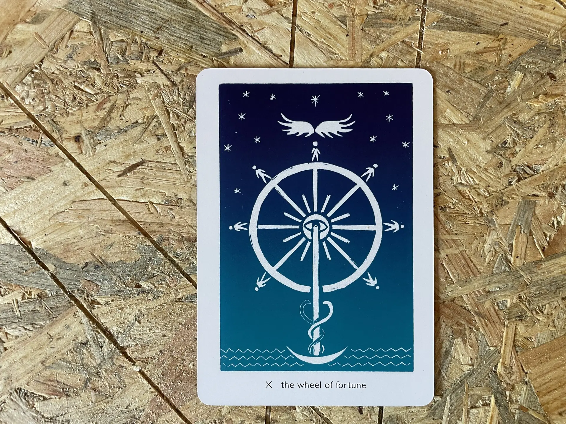 What does the wheel mean to you? What’s your relationship to change: are you centred in the middle, spinning with the edges of it, or holding it like spokes? What cycles are ending, what’s in transition, what tipping points have been reached? Do you believe in luck, in fate, in chance? What is descending, and what is emerging?
